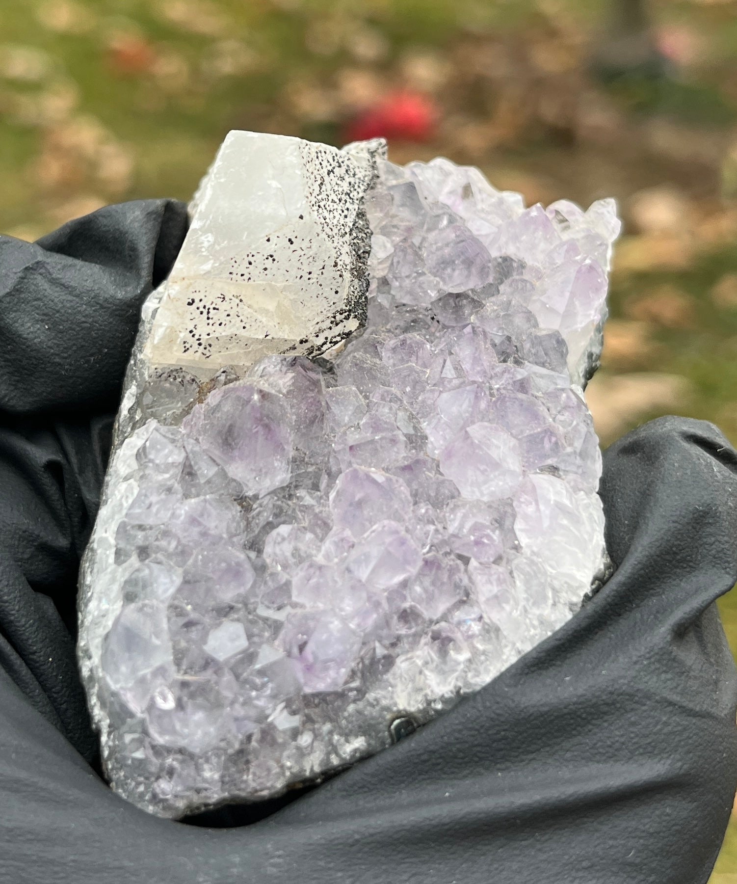 Amethyst & Calcite Cluster | Collector Grade Specimen with Black Mineral Inclusions
