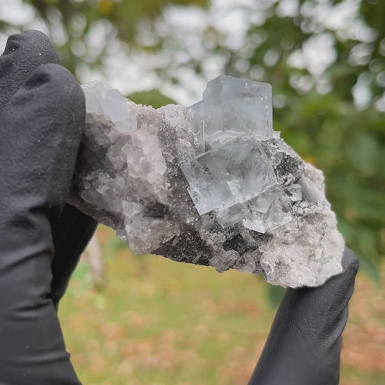 Blue Fluorite Cubes on Matrix | Natural Crystal Cluster from China | Focus, Clarity & Protection Stone