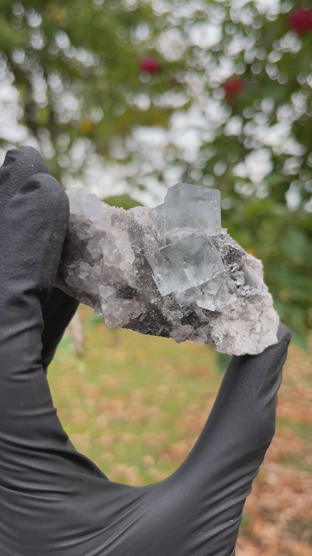The natural cubic formation of these crystals is truly mesmerizing. This piece showcases multiple crystals clustered together on their natural host rock, making it a beautiful and authentic display piece for any home or office.