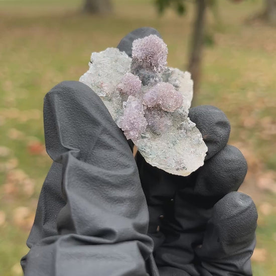 This specimen is characterized by its mesmerizing, bubbly, globular formations—known as "botryoidal"—in soft shades of lavender and gray-white, set on a translucent matrix. The unique texture makes it a wonderful tactile piece, and the soothing coloration radiates pure tranquility.