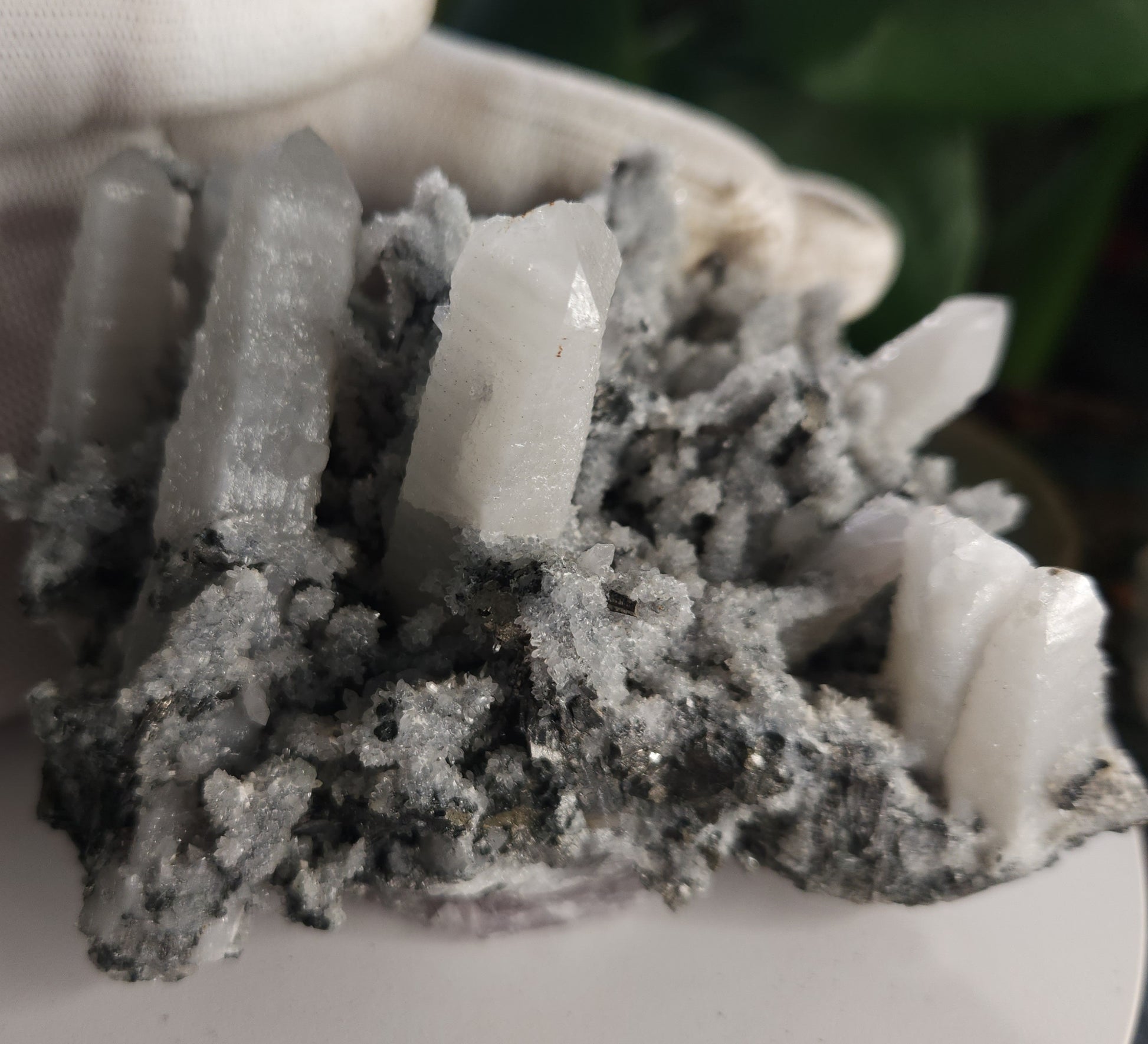 The combination of Candle Quartz + Galena + Calcite in one specimen is uncommon, especially in such well-formed geometry. The quartz points are thick, snowy-white, and highly architectural, giving the cluster a striking, sculptural presence from every angle. This is a standout display mineral suitable for advanced collectors and crystal enthusiasts who appreciate complex paragenesis and multi-phase formation.