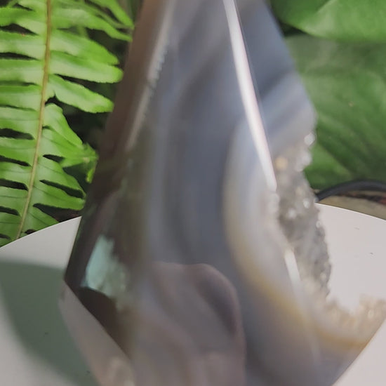 Collectors will love the structured chalcedony bands and unique geode portal, while energy enthusiasts value agate’s grounding and calming vibrations. A perfect blend of raw texture and refined polish.