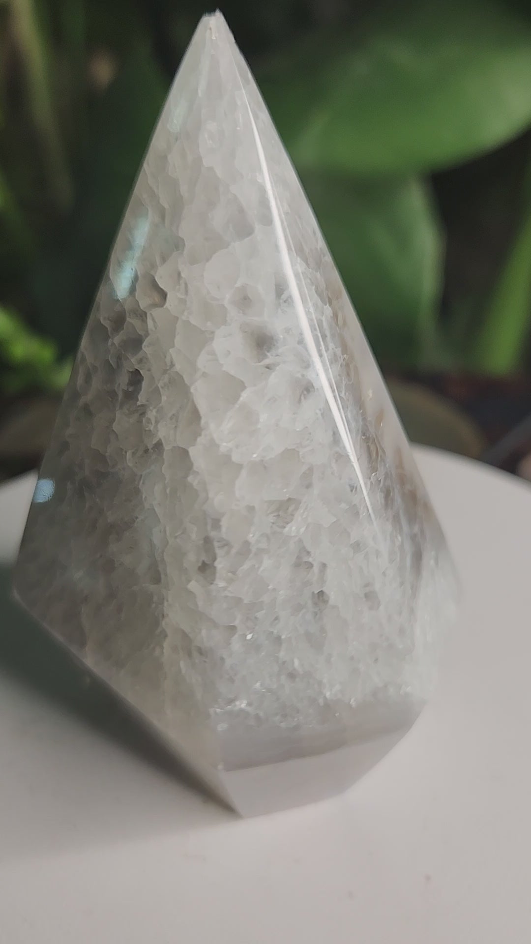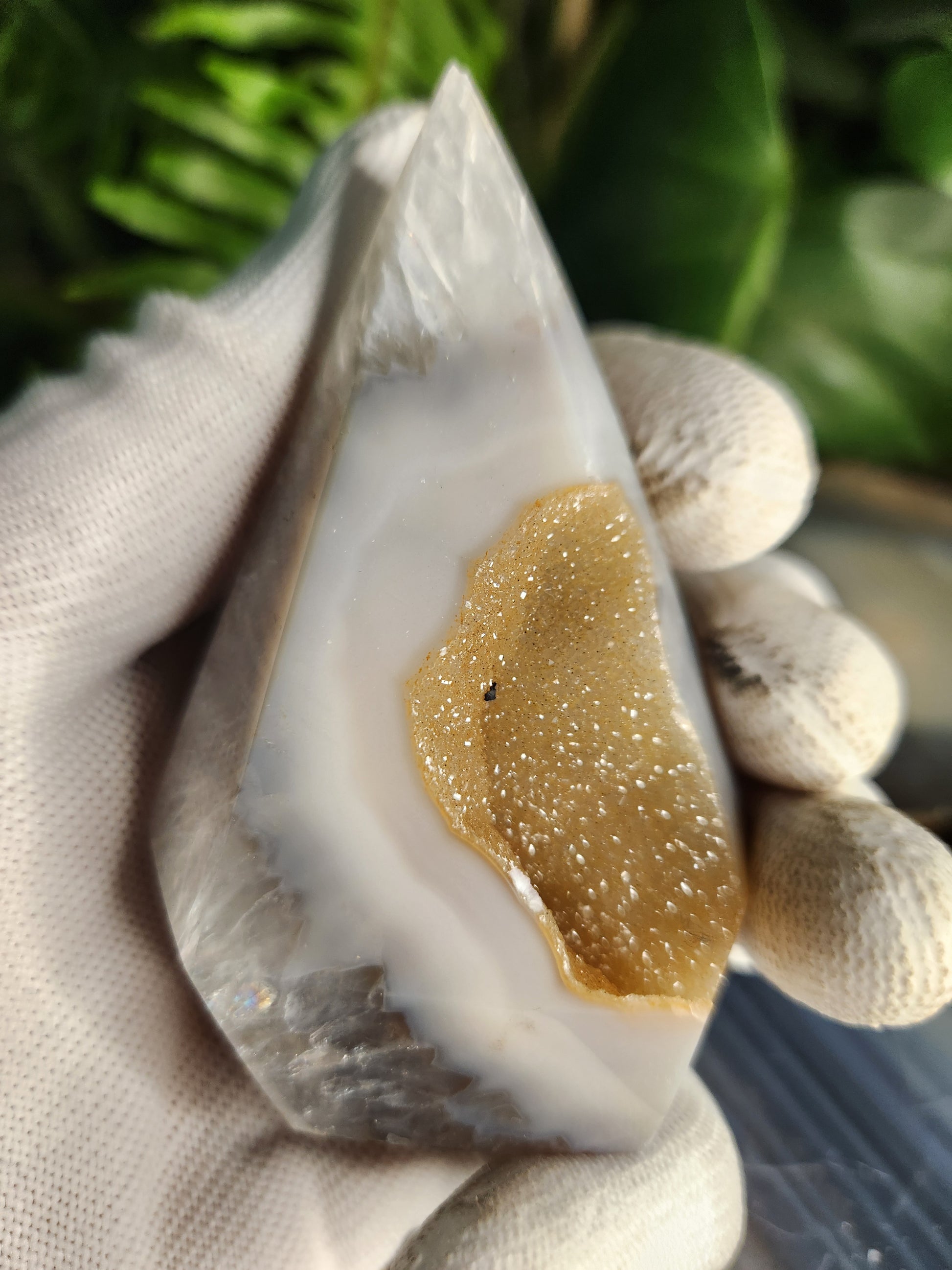 Discover the breathtaking beauty of nature with this exquisite Natural Agate Geode Diamond Point. Hand-polished to reveal its stunning layers and a sparkling geode cavity, this unique crystal tower is a true masterpiece of the earth.