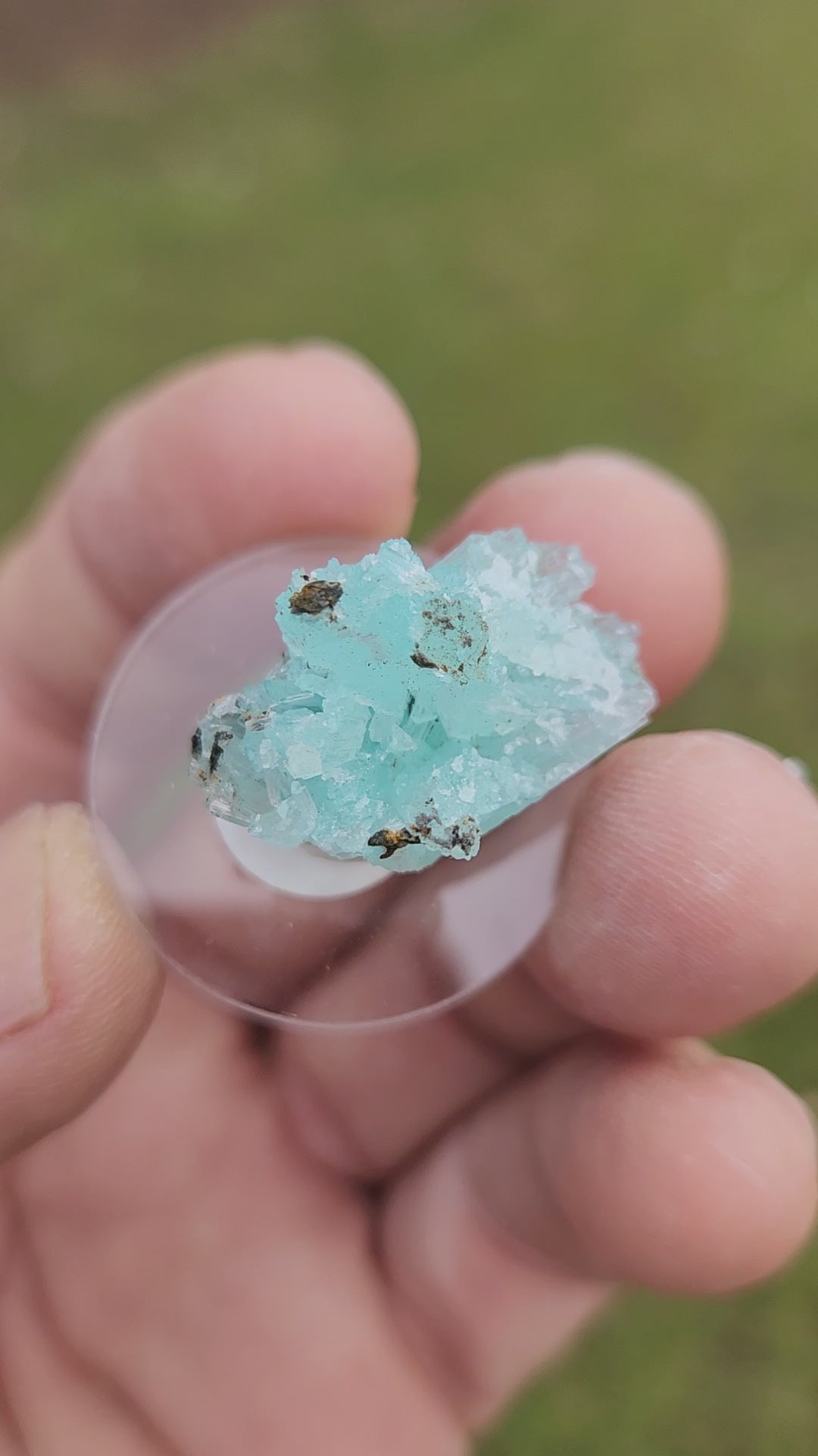 Blue Aragonite crystallizes in orthorhombic needle-like formations, creating delicate sprays and radial clusters. Its colour comes from trace minerals and fluid inclusions—high-quality clusters like this are increasingly scarce and highly sought after. A beautiful example of natural crystal habit and growth.