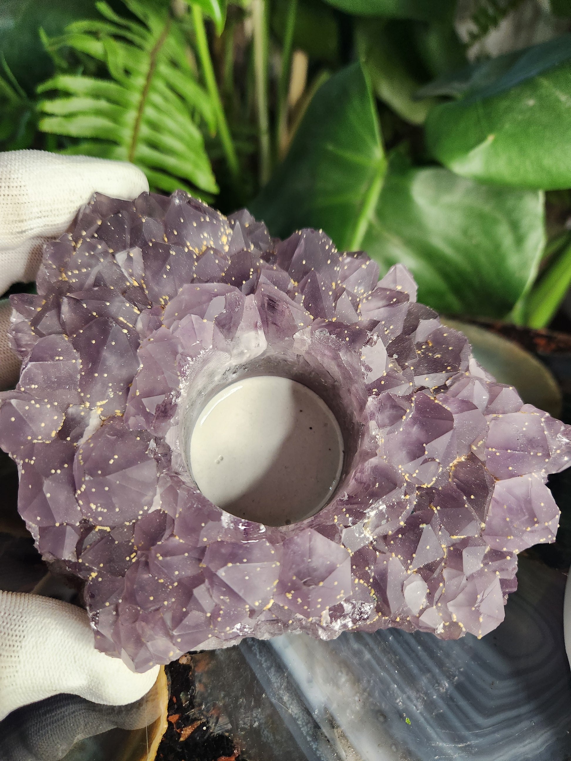 Brazil Amethyst Cluster Tealight Candle Holder – Premium Natural Geode