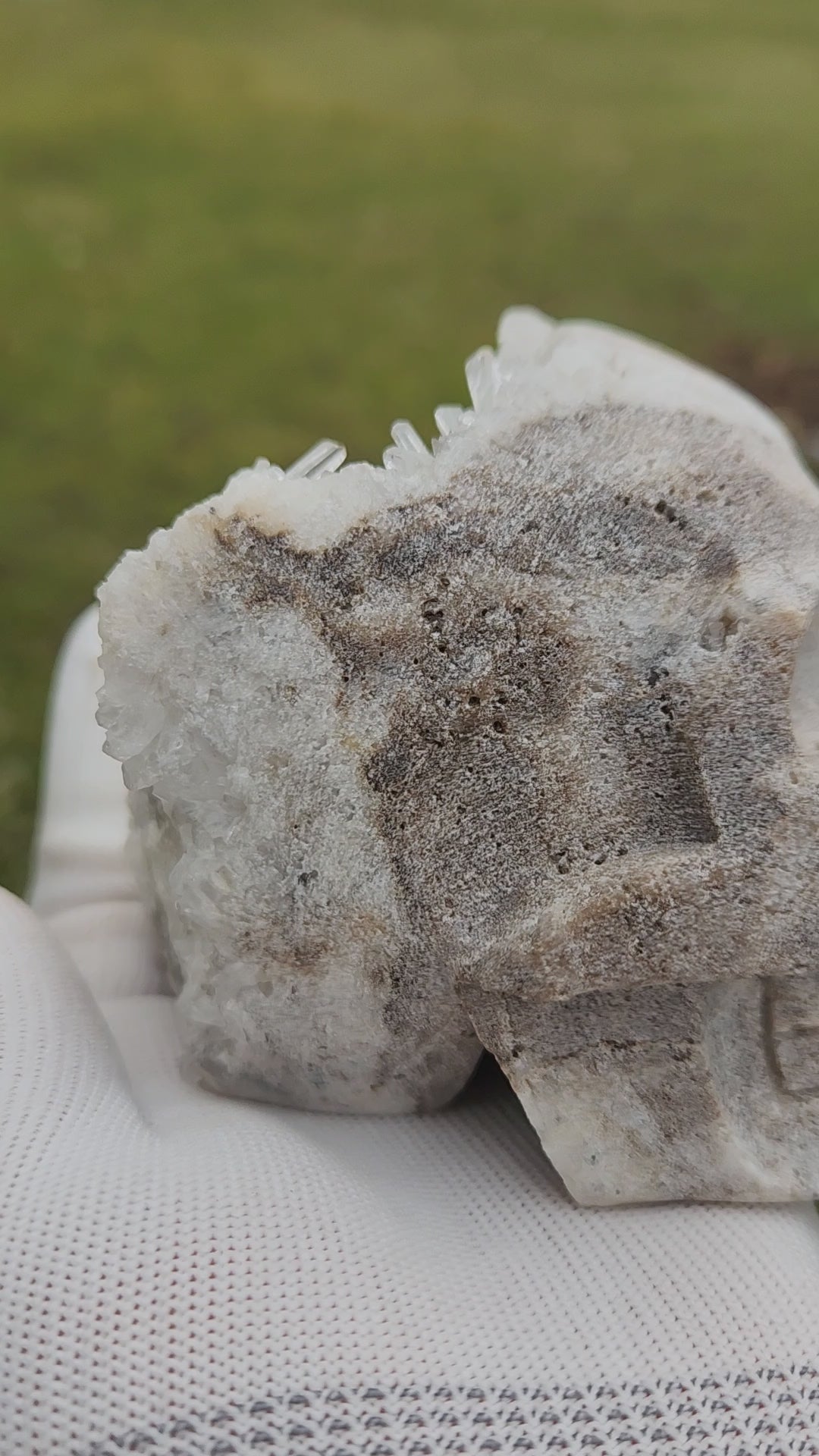 Crystal skulls are believed to hold powerful spiritual energy, making them perfect for meditation, healing practices, or as a statement piece in any crystal collection. The natural crystal growth on this carving adds an extra layer of energy and authenticity.