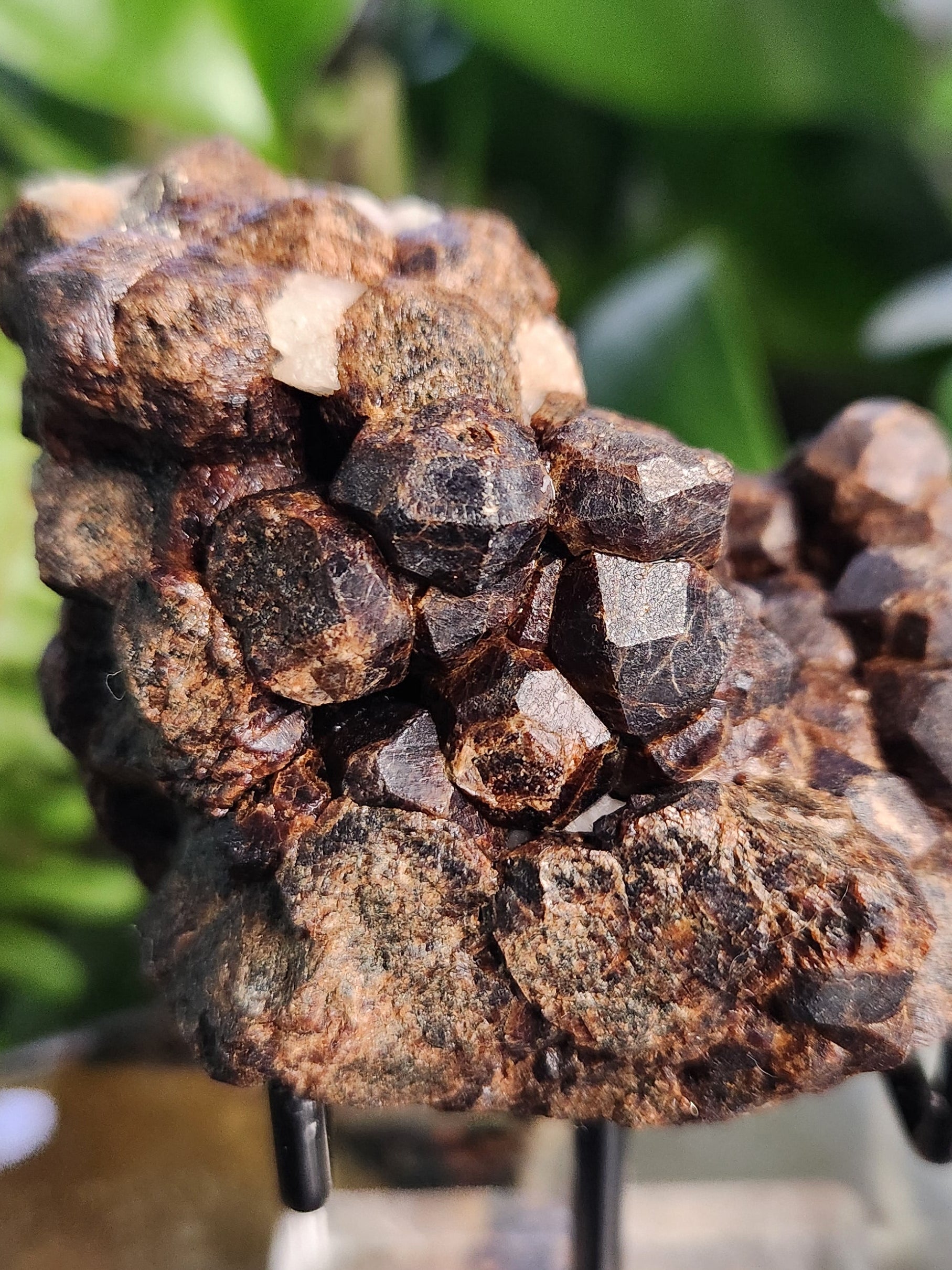 Almandine Garnet is loved for its stabilizing and energizing vibration. In metaphysical work, it’s known as a powerful Root Chakra stone, used to enhance strength, grounding, protection, confidence, and physical vitality. Whether for a mineral cabinet, a healing space, or a unique décor piece, this garnet cluster delivers both visual impact and energetic presence.