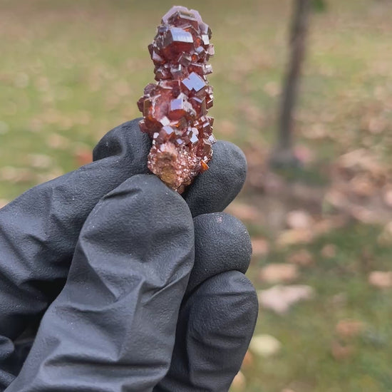 Gorgeously formed on its natural matrix, this Vanadinite cluster creates a dynamic and aesthetically pleasing display. Originating from the renowned mineral-rich regions of Morocco, this specimen is a prime example of the high-quality Vanadinite sought after by collectors worldwide. Its rich color and distinct crystal habits make it a standout addition to any mineral collection.