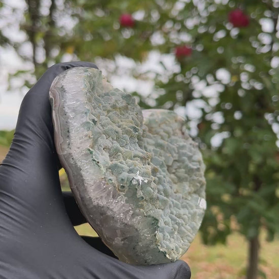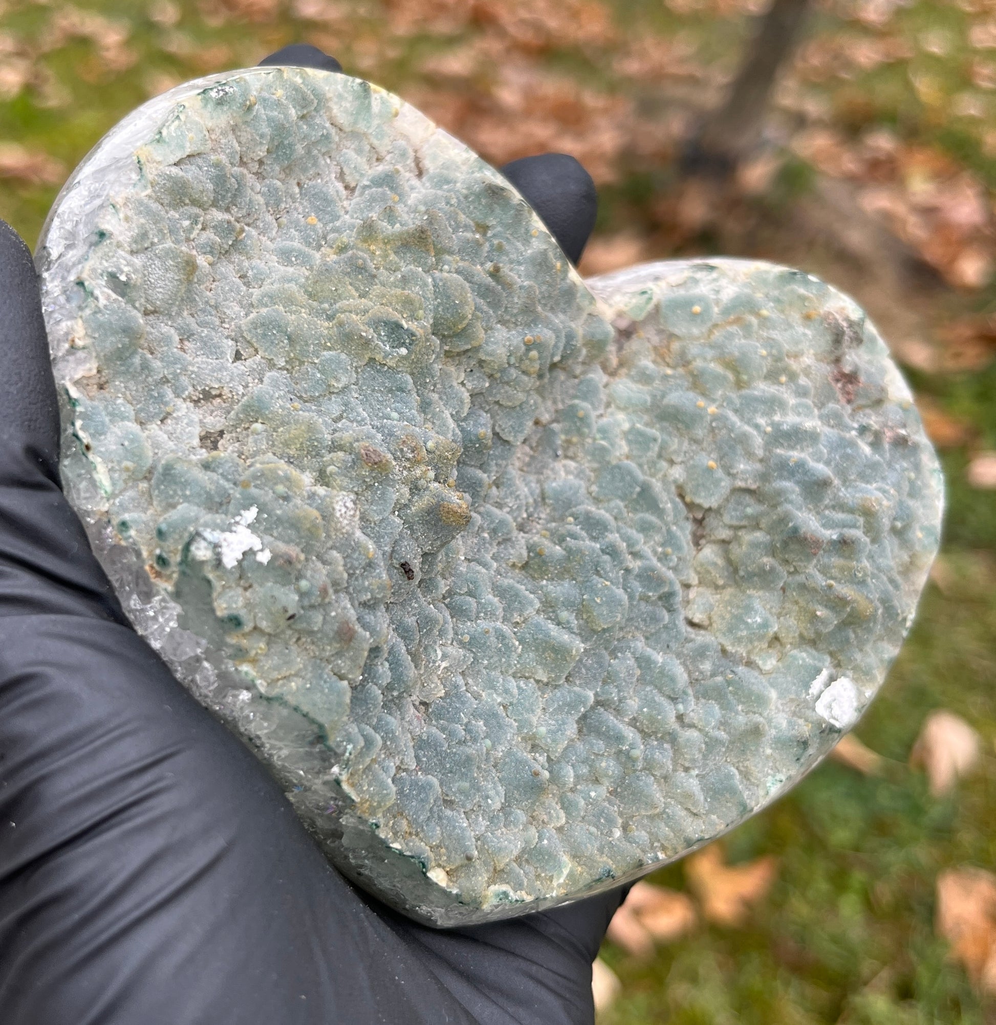 Green Amethyst (Prasiolite) Druzy Heart | Polished Crystal Carving for Home Decor & Heart Chakra Healing