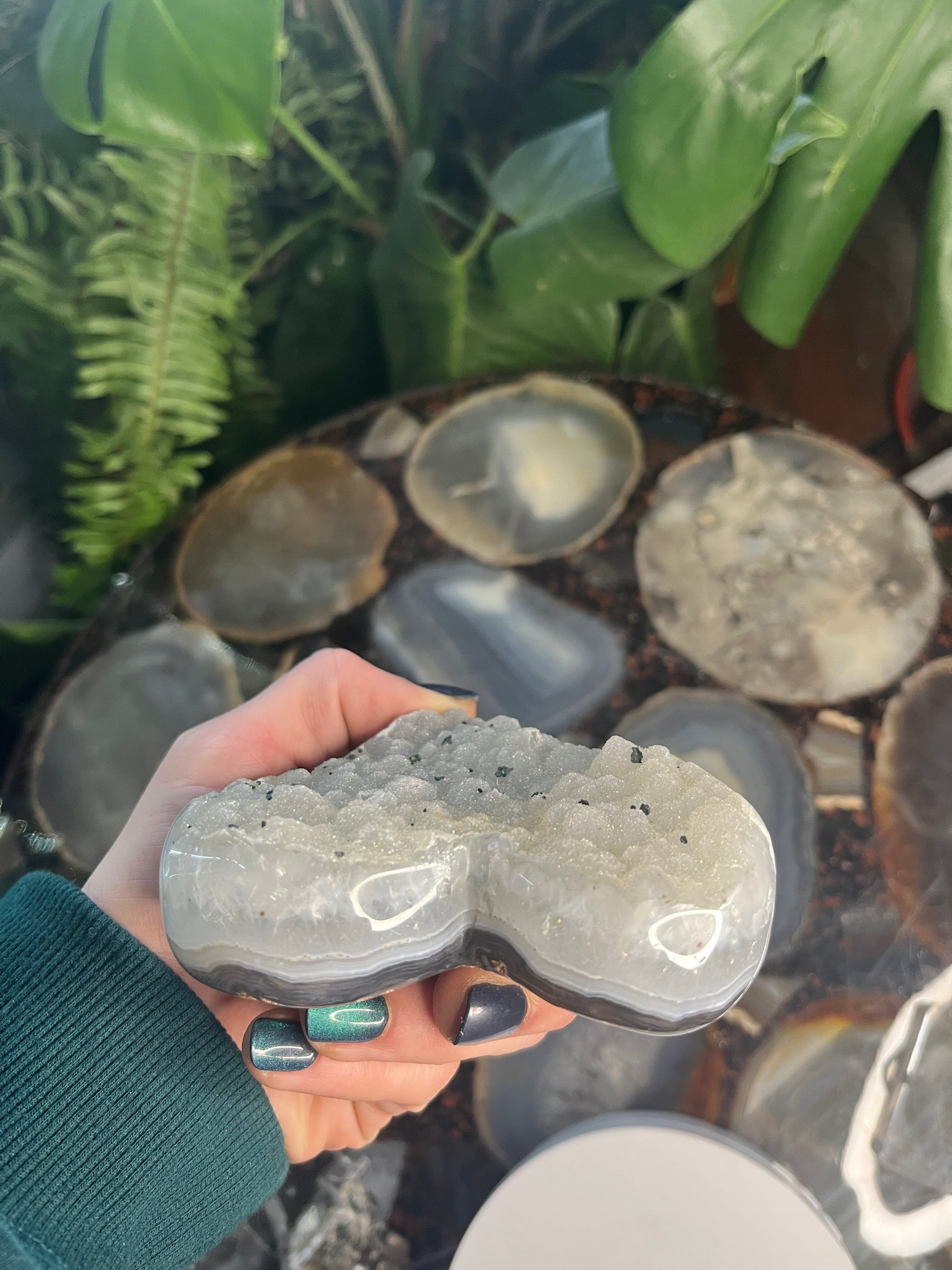 • Unique Druzy Surface: The front of this heart is a natural druzy formation, a layer of micro-crystals that create a stunning, sparkling texture.