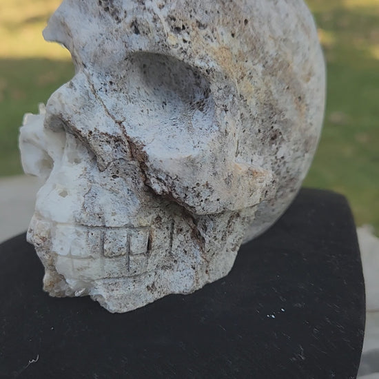 Quartz is known as a powerful energy amplifier, promoting clarity, focus, and healing. The natural druzy adds calming and uplifting energy, making this skull both beautiful and spiritually significant.