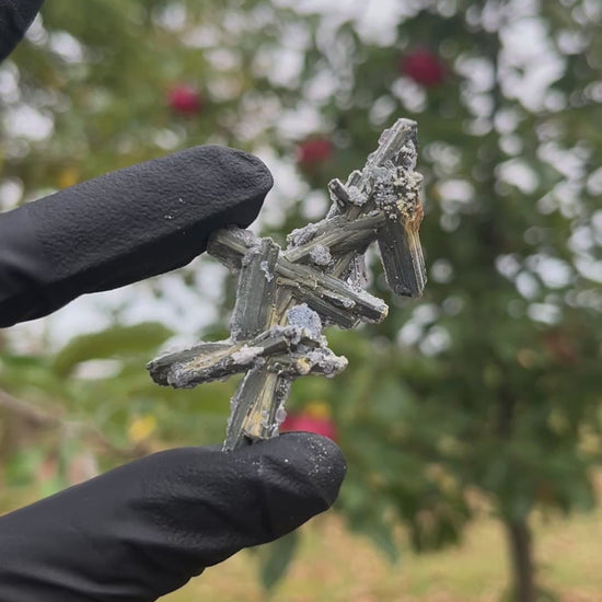 Stibnite with Fluorite Cluster | UV Reactive Crystal Specimen | Fluorescent Mineral
